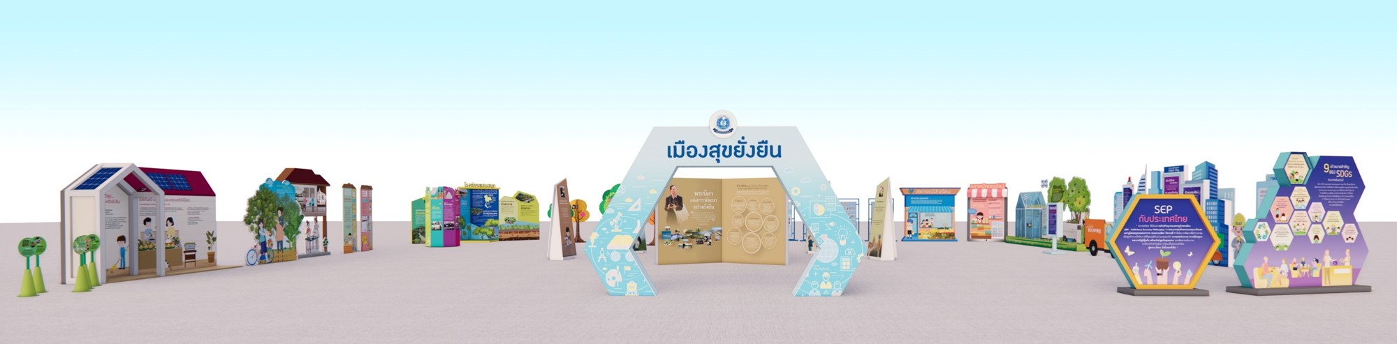 นิทรรศการเคลื่อนที่เมืองสุขยั่งยืน ประกอบด้วย 10 ฐานการเรียนรู้