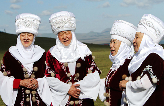 หญิงคีร์กีซในชุดแต่งกายพื้นเมือง