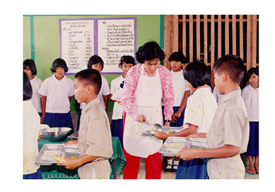 ท่านจึงมีพระราชกระแสว่า แทนที่จะเอาอาหารไปให้นักเรียนโดยตรง ครูและผู้ปกครองควรปลูกพืชผักแล้วเอามาเป็นอาหารกลางวัน นอกจากนักเรียนจะได้อาหารกลางวันแล้วนักเรียนยังได้ความรู้อีกด้วย จากนั้นท่านก็ทดลองทำอยู่หนึ่งปีและก็ได้ขยายงานต่อไปหลังจากที่ได้ทำโครงการนี้แล้วก็มีพระราชดำริทำโครงการอื่นๆตามมา โครงการที่เกี่ยวกับการศึกษาก็จะมีโครงการนักเรียนในพระราชานุเคราะห์ โครงการศูนย์การเรียนรู้ชุมชนชาวไทยภูเขา โครงการศูนย์พัฒนาเด็กเล็ก เป็นต้น โครงการด้านสุขภาพอนามัย ยกตัวอย่างเช่น โครงการส่งเสริมโภชนาการและสุขภาพอนามัยแม่และเด็กในชุมชนถิ่นทุรกันดาร โครงการเกษตรเพื่ออาหารกลางวัน โครงการควบคุมโรคขาดสารไอโอดีน โครงการศูนย์เตาะแตะ เป็นต้น โครงการด้านสิ่งแวดล้อม ยกตัวอย่างเช่น โครงการสิ่งแวดล้อมในโรงเรียน เป็นต้น โครงการด้านอาชีพ ยกตัวอย่างเช่น การงานพื้นฐานอาชีพ สหกรณ์ เป็นต้น ทรงรับสั่งว่า หากคนในชุมชนรวมตัวกันเป็นเป็นสหกรณ์ที่มีความเข้มแข็ง การจะทำอะไรก็จะประสบความสำเร็จ