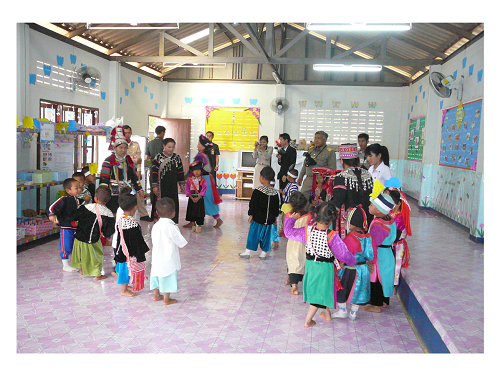 เวลาพระองค์ท่านไปพัฒนาพื้นที่ในชนบทที่ห่างไกลถ้าที่ไหนไม่มีสถานศึกษา ท่านก็จะทรงสร้างสถานศึกษา มีทั้งโรงเรียน ตำรวจตระเวนชายแดน โรงเรียนสพฐ. ศูนย์การเรียนชุมชนชาวไทยภูเขา ถ้าที่ไหนมีโรงเรียนแล้วท่านก็จะไปช่วยเรื่องการพัฒนา เรื่องการศึกษาแล้วก็พัฒนาเป็นองค์รวมดังที่กล่าวมาแล้วหรือการพัฒนาแบบบูรณาการ คือไปที่โรงเรียนพัฒนาทั้งการด้านการศึกษา ด้านสุขอนามัย ทั้งพื้นฐานอาชีพรวมไปถึงเรื่องของสิ่งแวดล้อม และถ้าชุมชนในพื้นที่มีความพร้อมก็จะขยายผลจากโรงเรียนไปสู่ชุมชน สู่ประชาชน