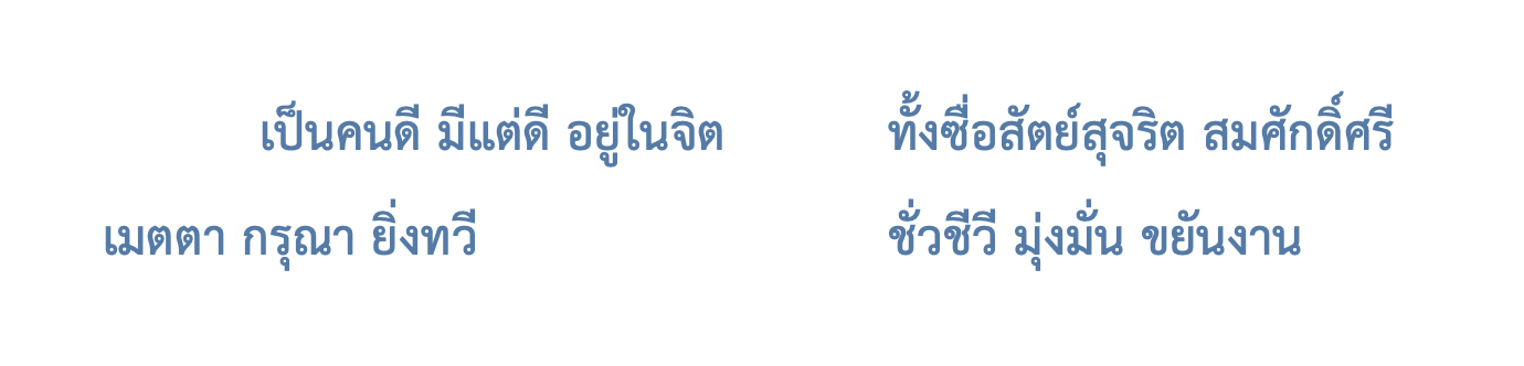 พระราชดำรัสข้างต้นจักอยู่ในใจของผู้ร่วมแรงร่วมใจสร้างเยาวชนของชาติให้เป็นคนดี มีคุณภาพ ให้เป็นกำลังสำคัญของชาติบ้านเมืองในอนาคต ยิ่งกว่านั้น ทรงพระกรุณาโปรดเกล้าโปรดกระหม่อมพระราชทานลายพระราชหัตถ์คติพจน์คำกลอน ความว่า